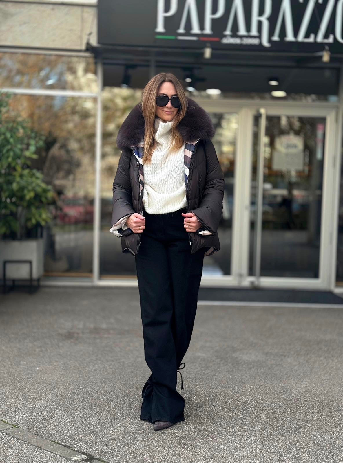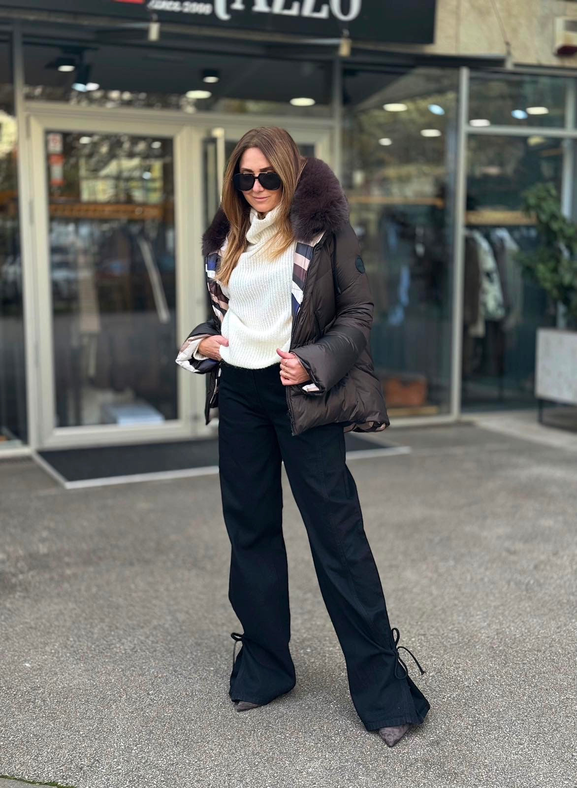JAKNA SA DVA LICA POLIESTER PRVO LICE FONDENTE DRUGO LICE PUCCI BLU PRIRODNO KRZNO LISICE POSTAVA POLIESTER...