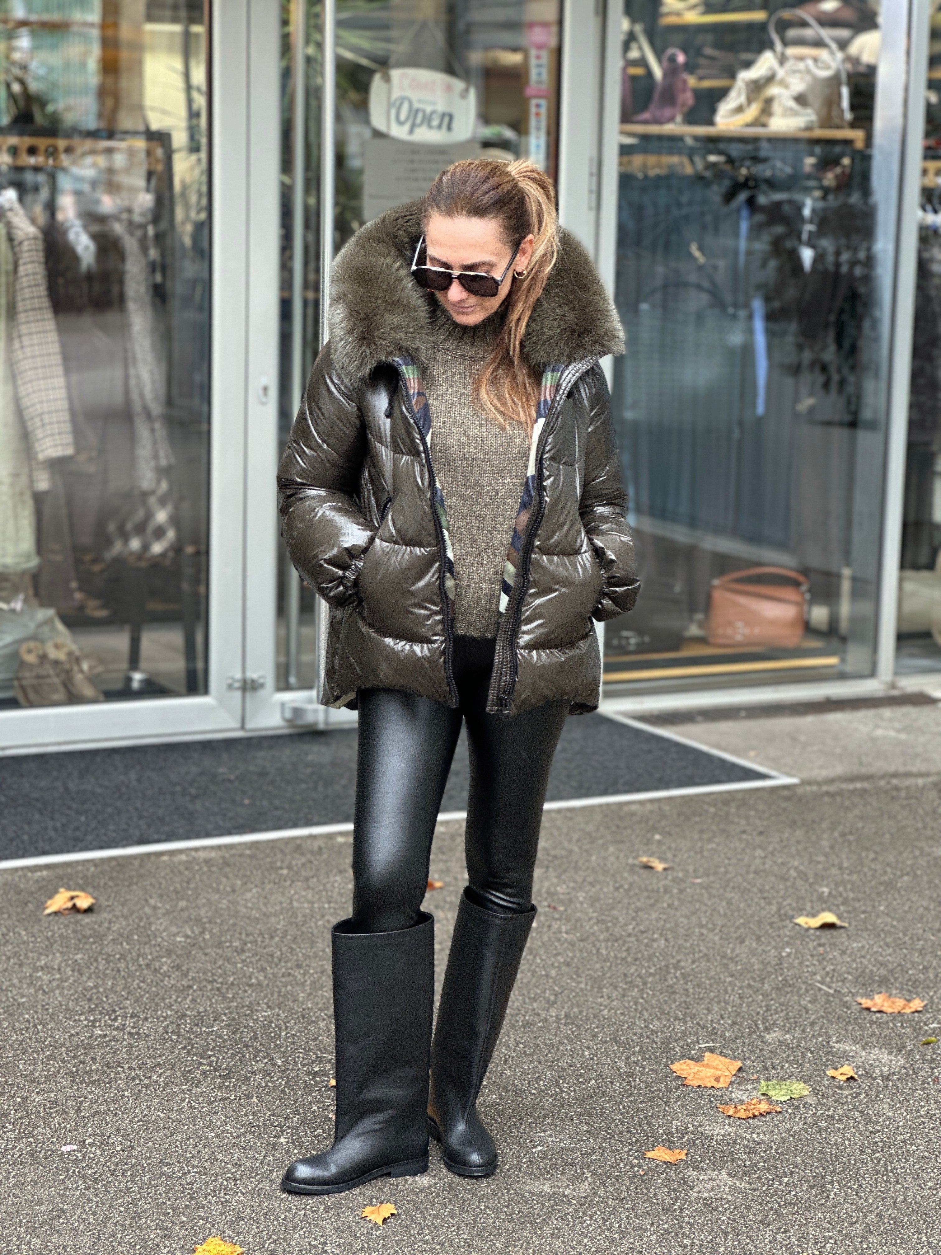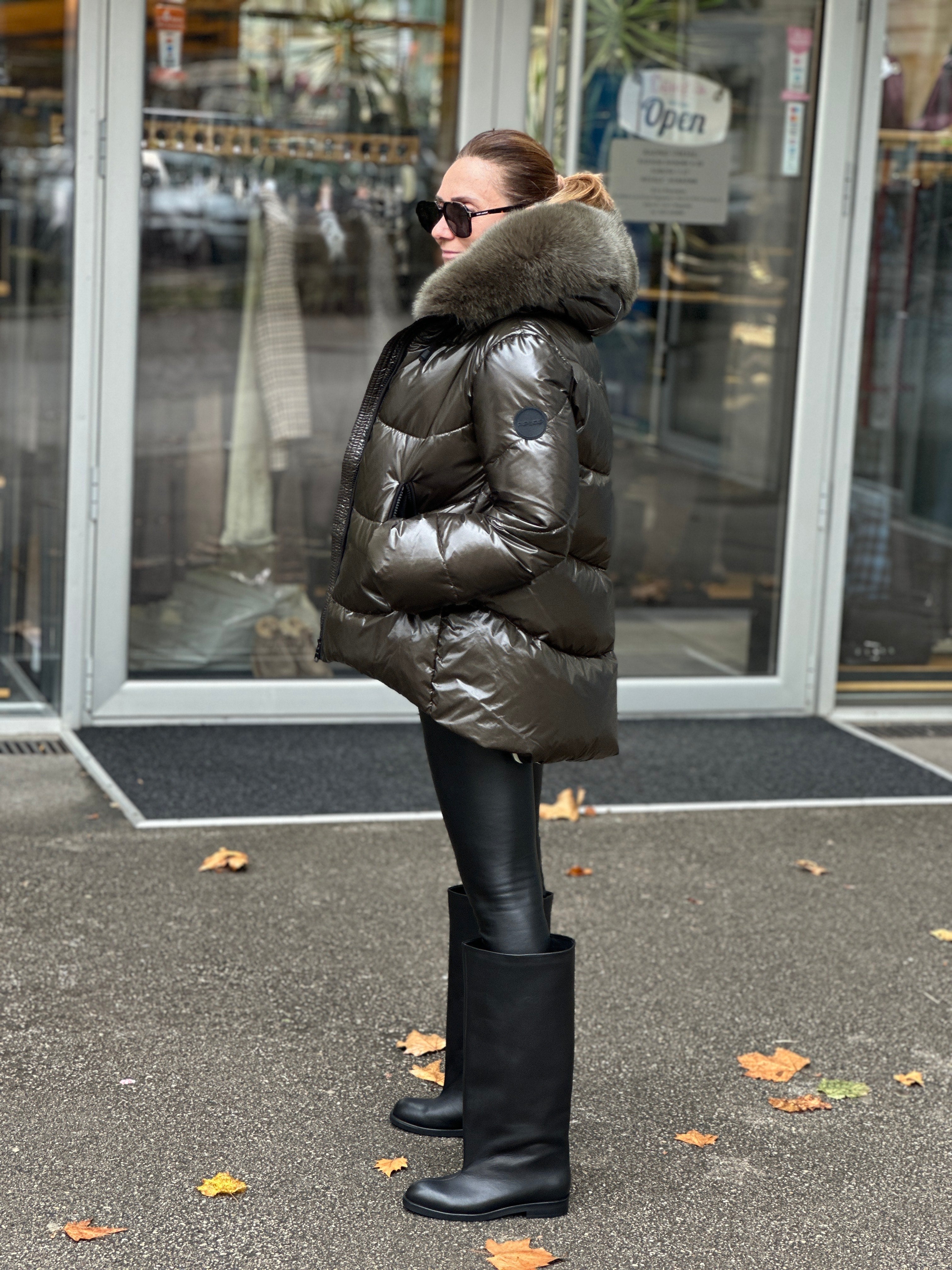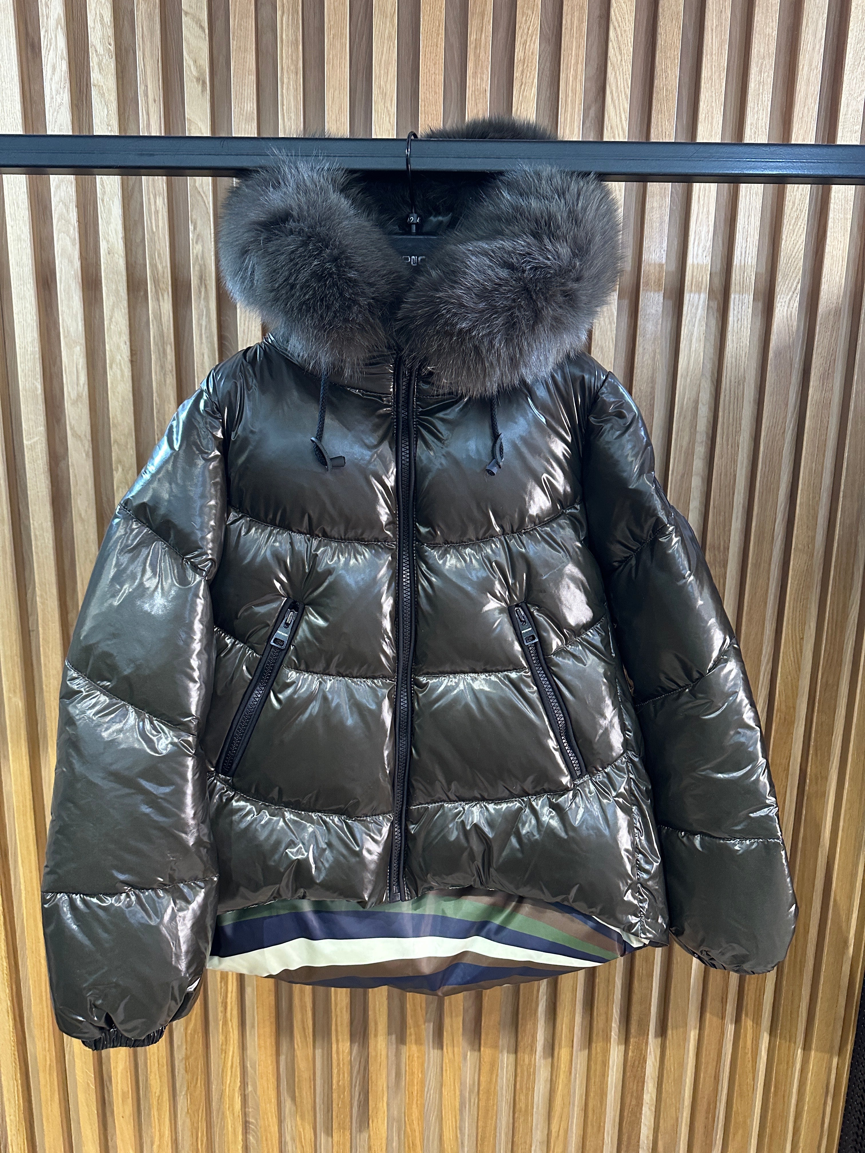 JAKNA SA PRIRODNIM KRZNOM  POSTAVA POLIESTER PUNJENA GUŠČIJIM PAPERJEM