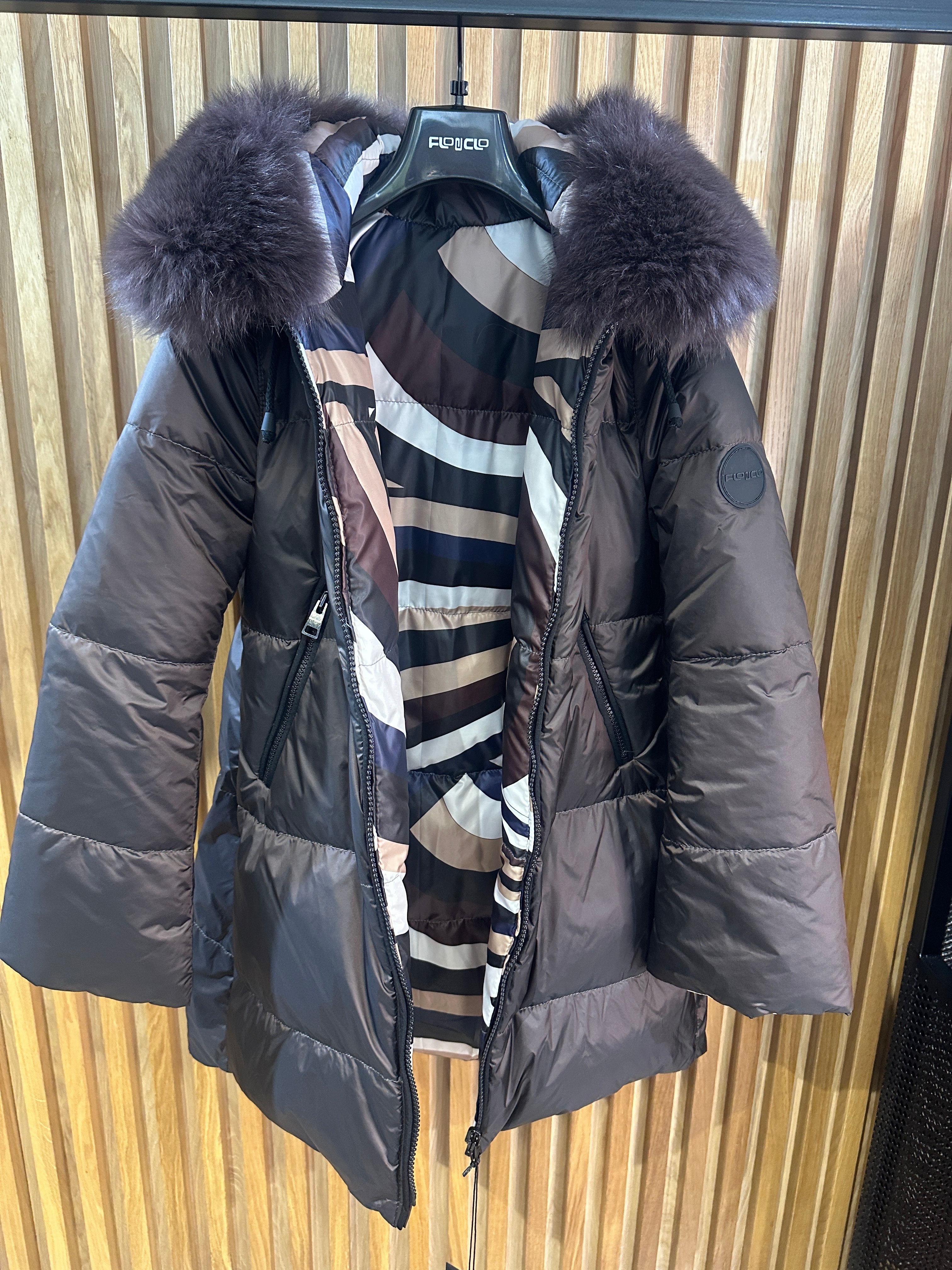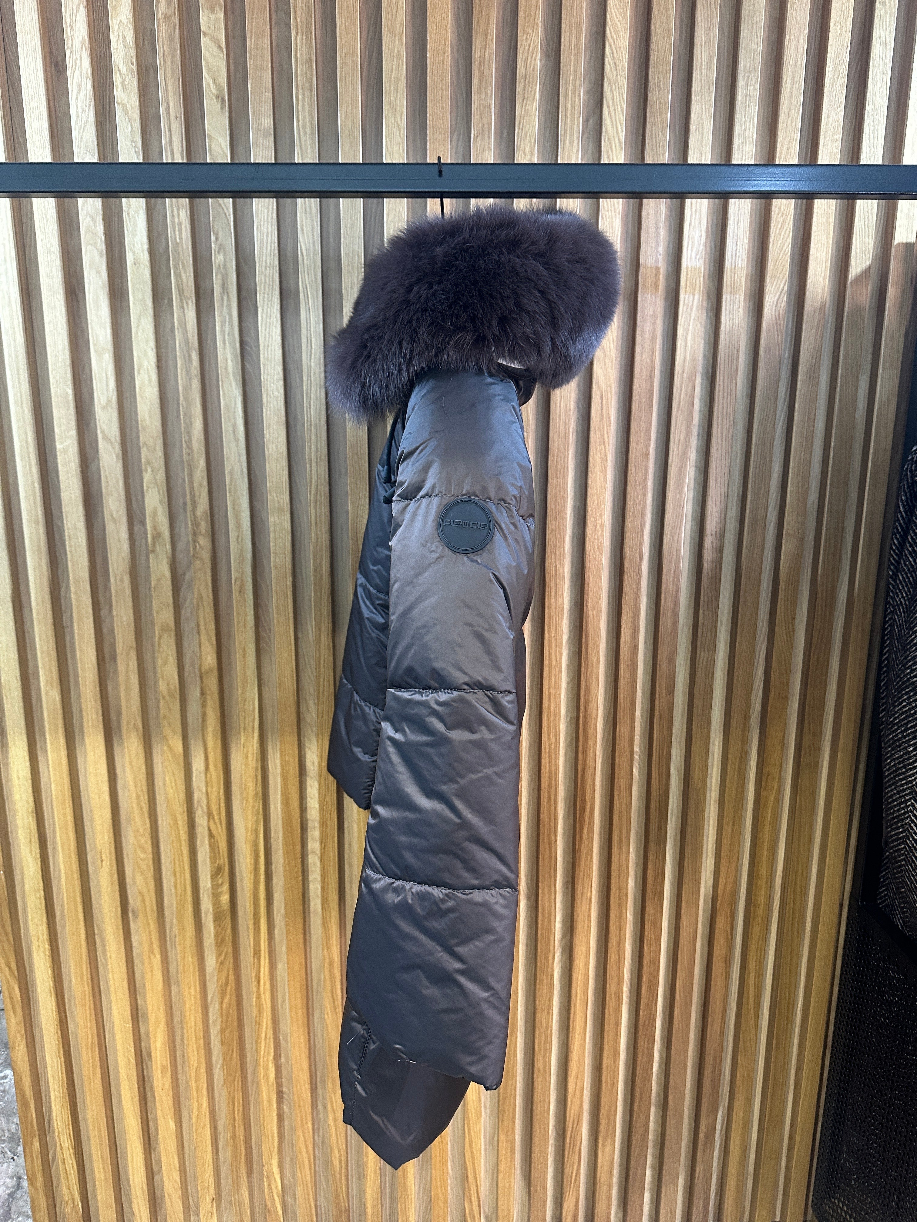 JAKNA SA PRIRODNIM KRZNOM SA DVA LICA PRVO LICE FONDENTE DRUGO LICE PUCCI BLU POSTAVA POLIESTER PUNJENA...